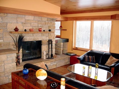 Christensen Residence in Wacouta, Red Wing, MN 55066 St. Croix Stone fireplace & cork floor.